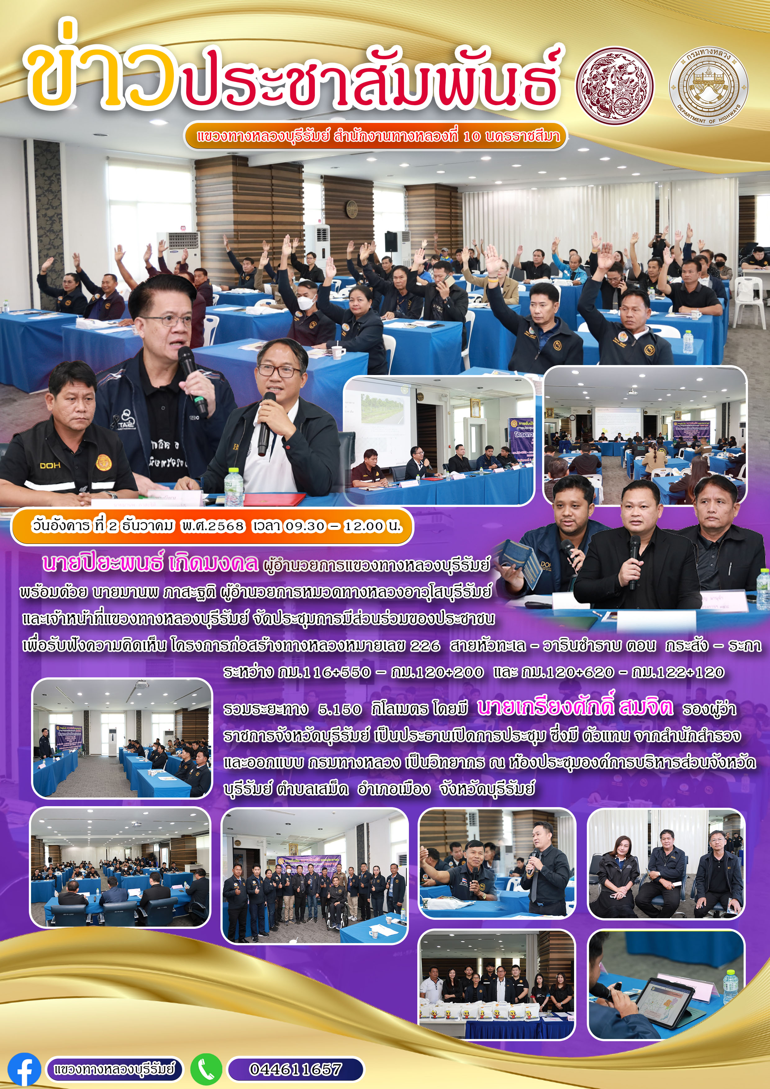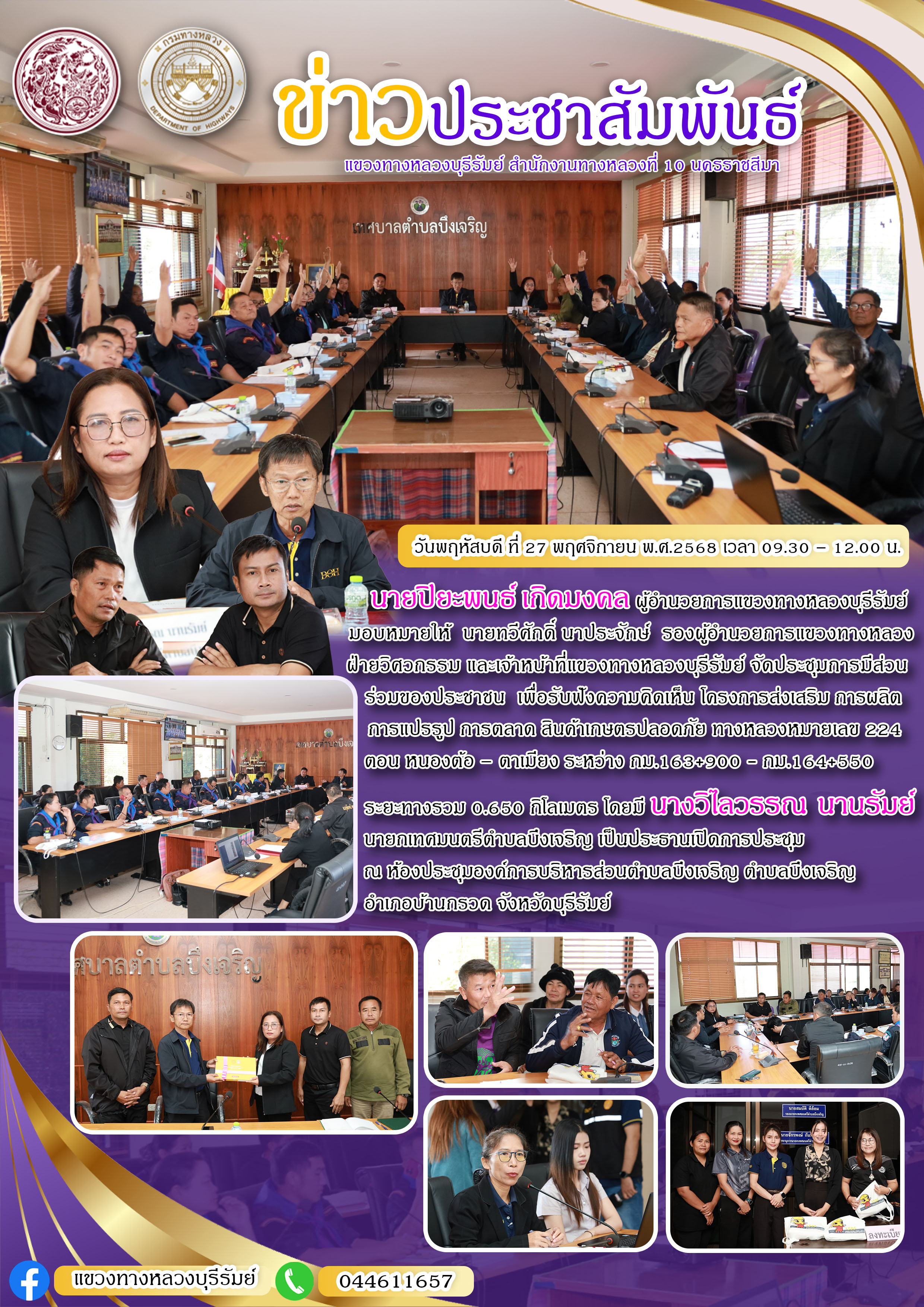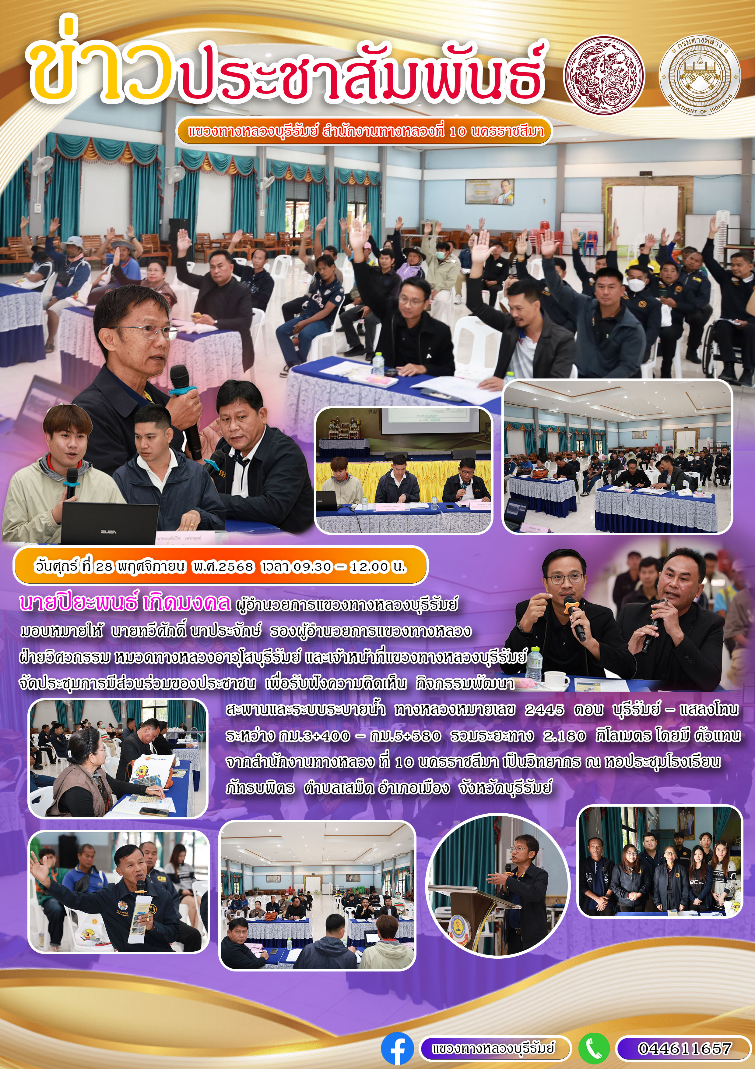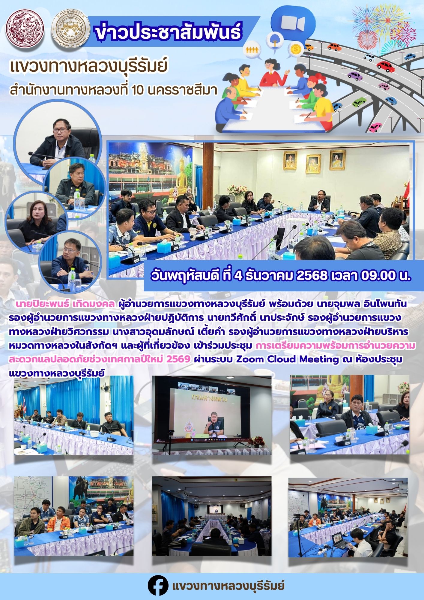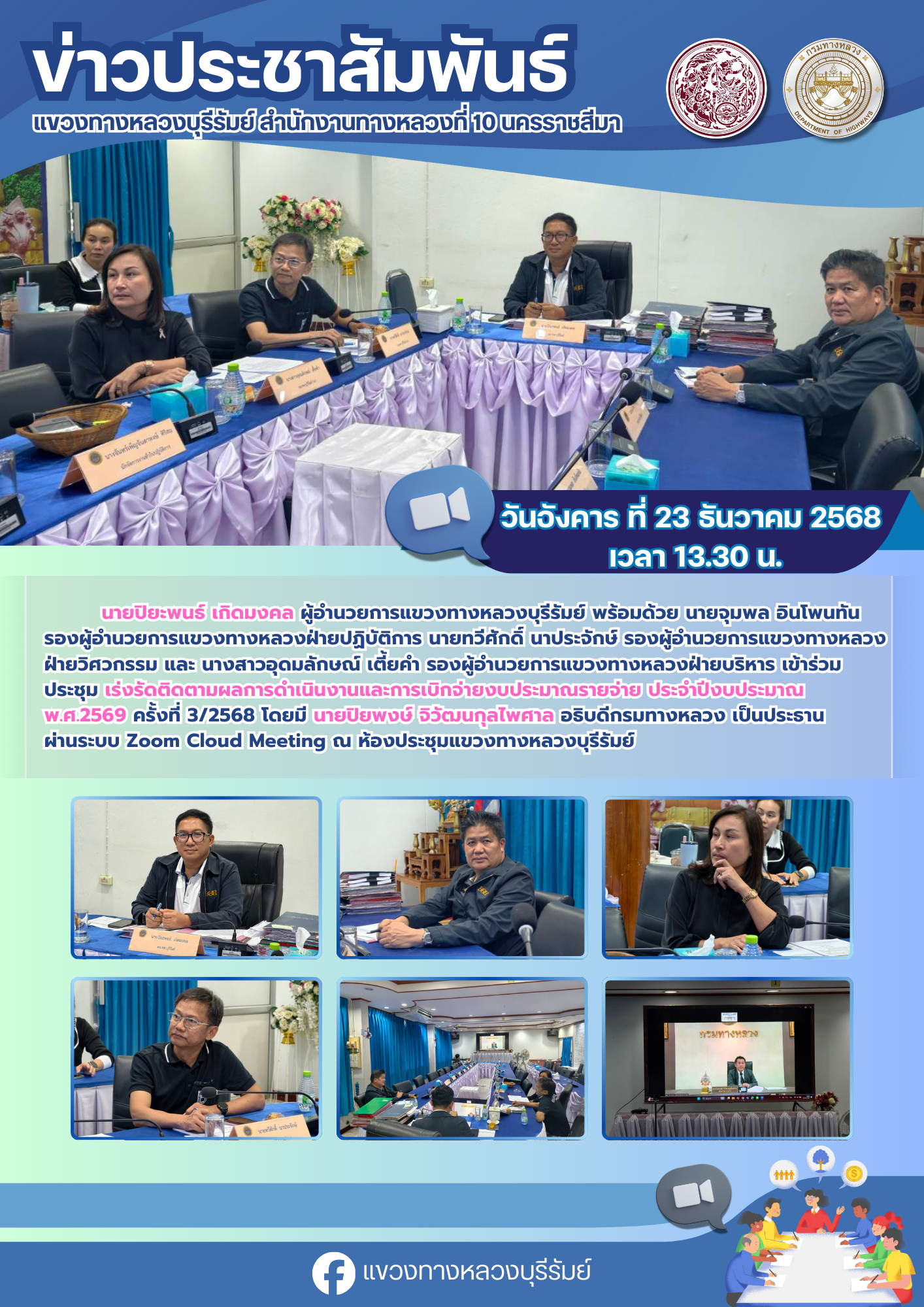 ประชุม เร่งรัดติดตามผลการดำเนินงานและการเบิกจ่ายงบประมาณรายจ่าย ประจำปีงบประมาณ พ.ศ.2569 ครั้งที่ 3/2568 ผ่านระบบ Zoom Cloud Meeting ณ ห้องประชุมแขวงทางหลวงบุรีรัมย์