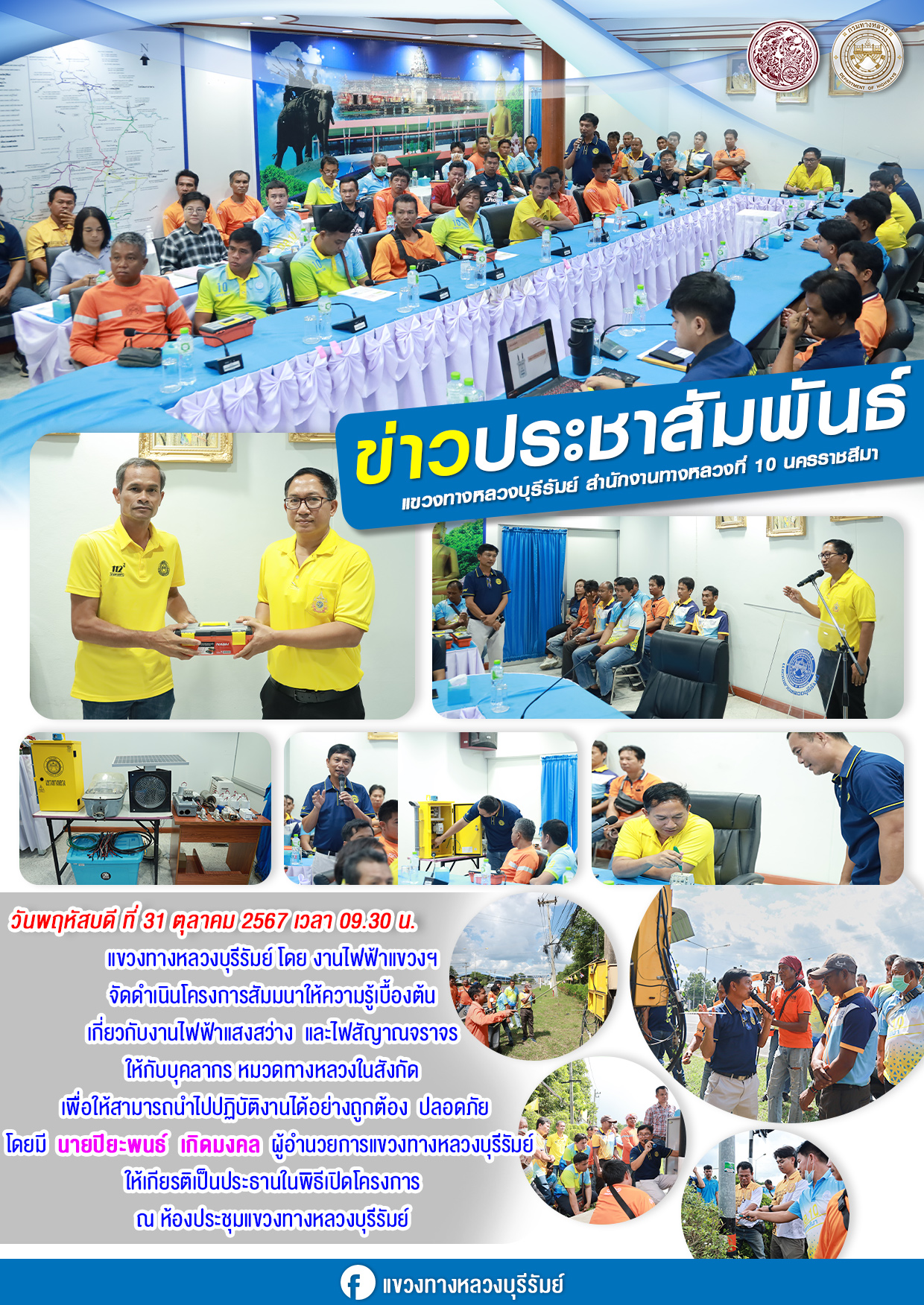 งานไฟฟ้าแขวงฯ จัดดำเนินโครงการสัมมนาให้ความรู้เบื้องต้น เกี่ยวกับงานไฟฟ้าแสงสว่าง และไฟสัญาณจราจร