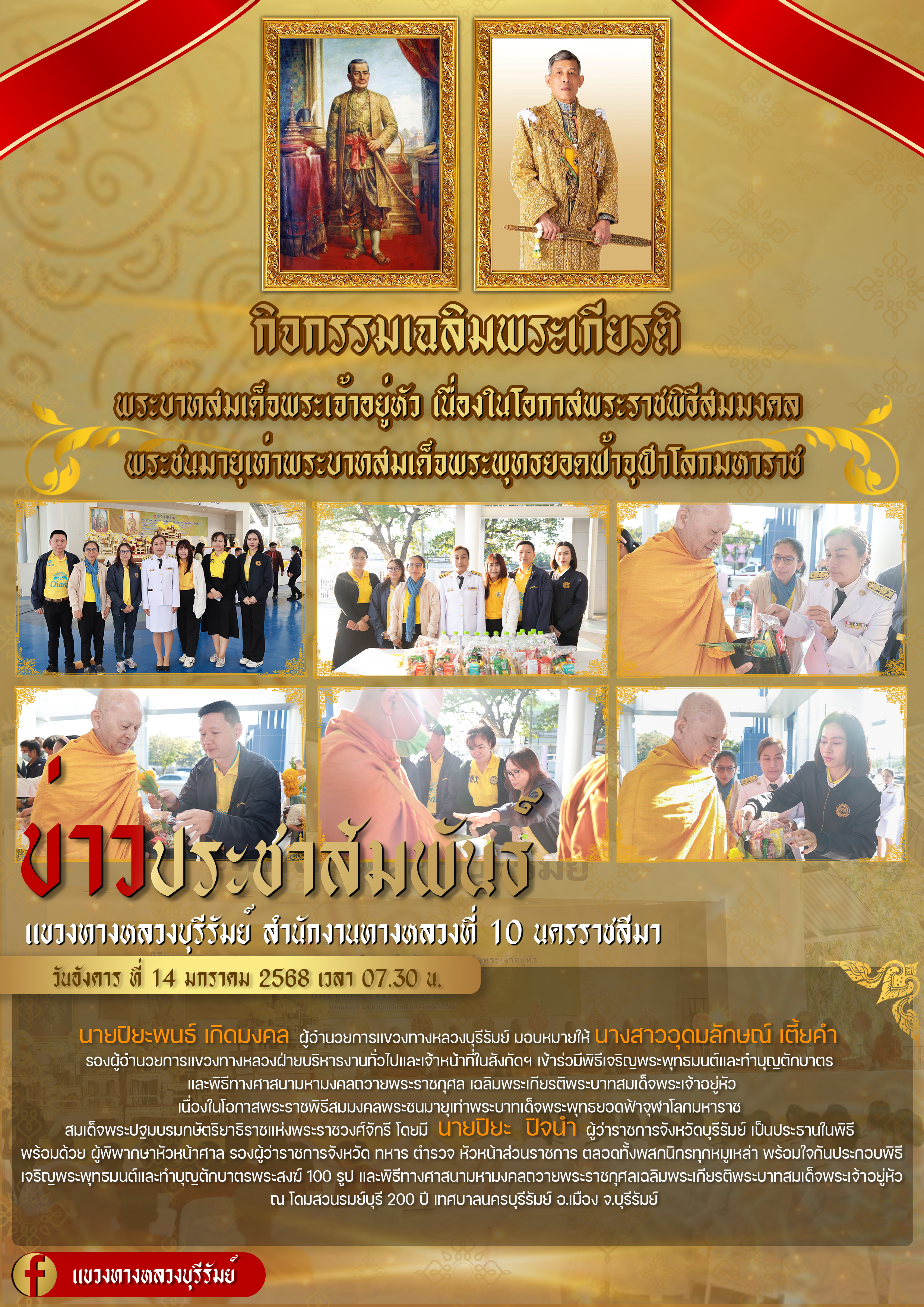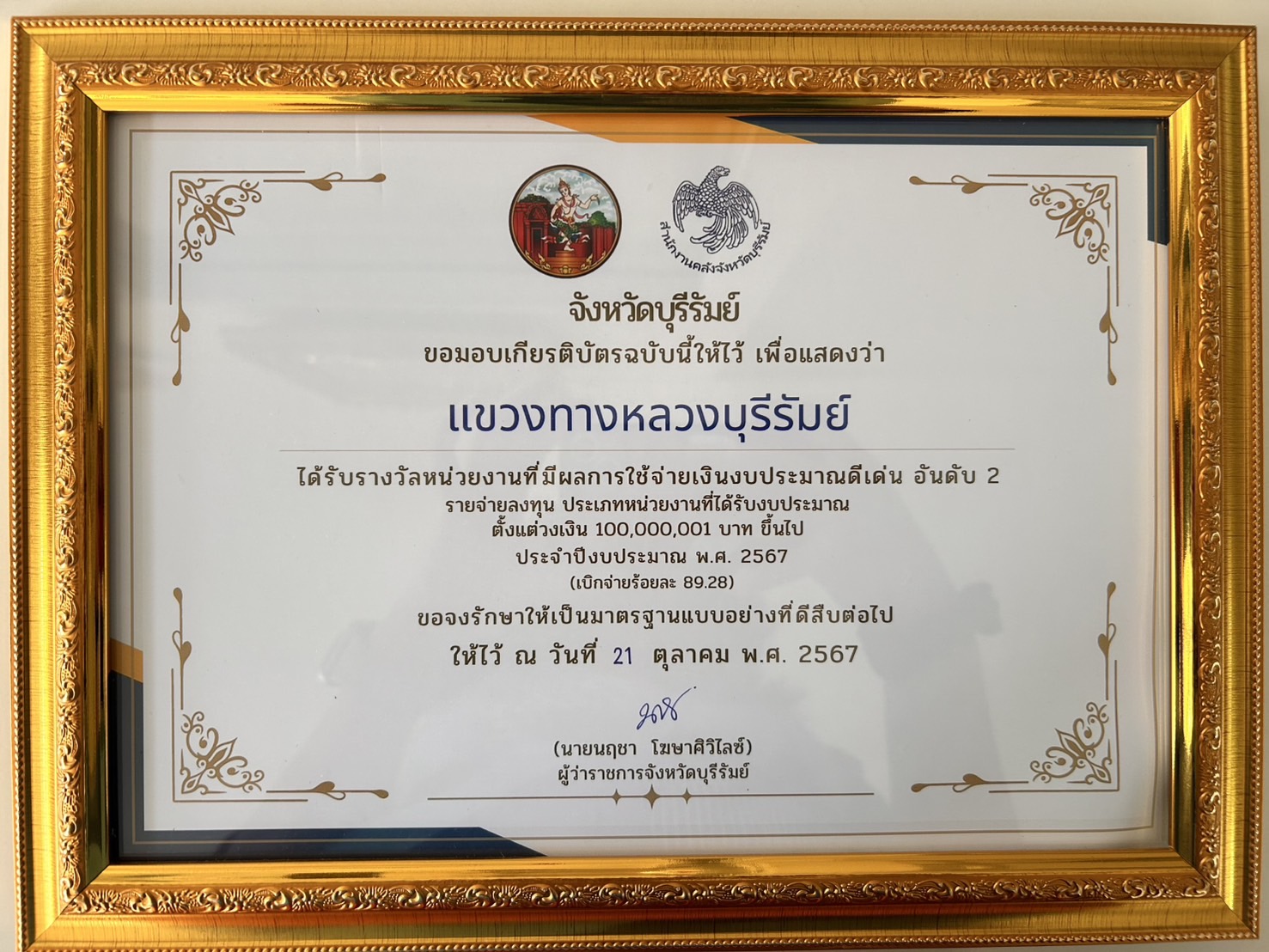 แขวงทางหลวงบุรีรัมย์ ได้รับรางวัลหน่วยงานที่มีผลการใช้จ่าบเงินงบประมาณดีเด่น อันดับ 2 รายจ่ายเงินทุน