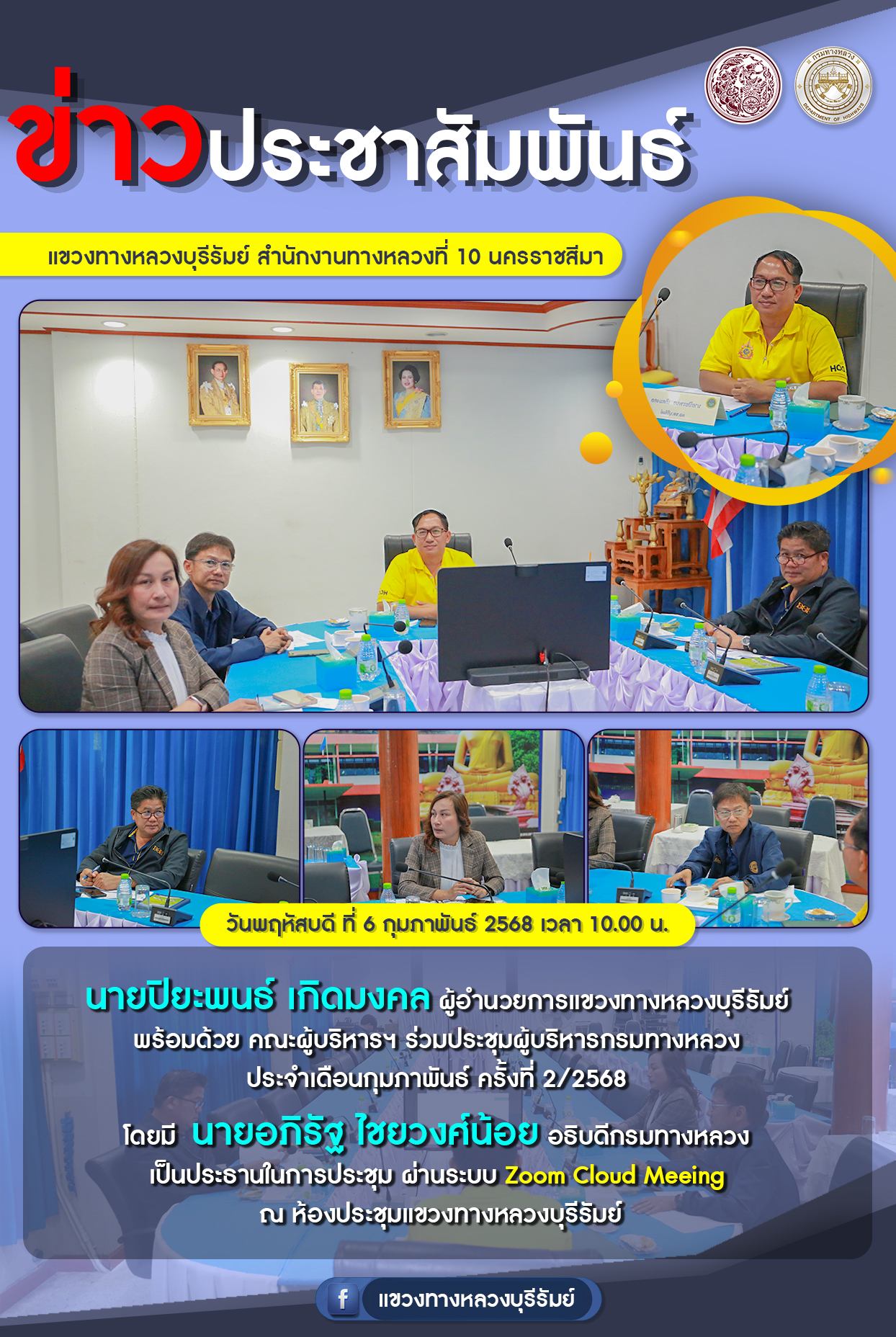 ประชุมผู้บริหารกรมทางหลวง ประจำเดือนกุมภาพันธ์ ครั้งที่ 2/2568