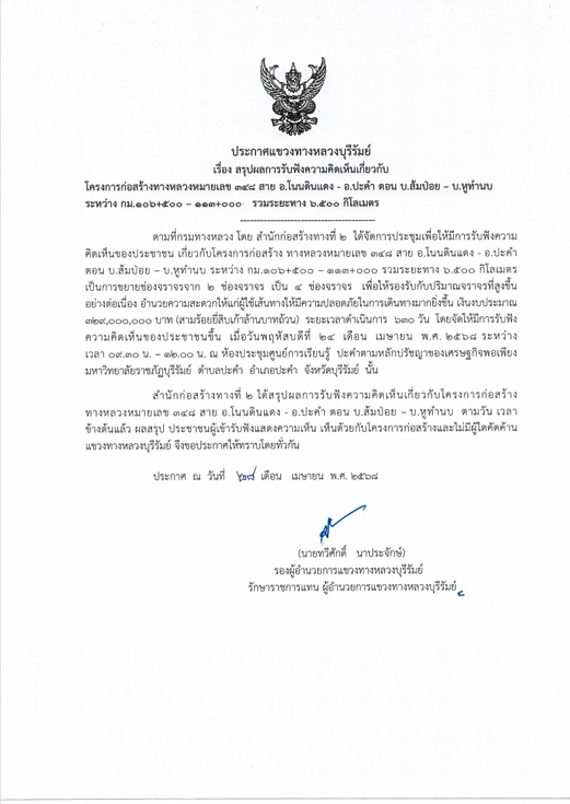 สรุผลการรับฟังความคิดเห็นเกี่ยวกับโครงการก่อสร้างทางหลวงหมายเลข 348