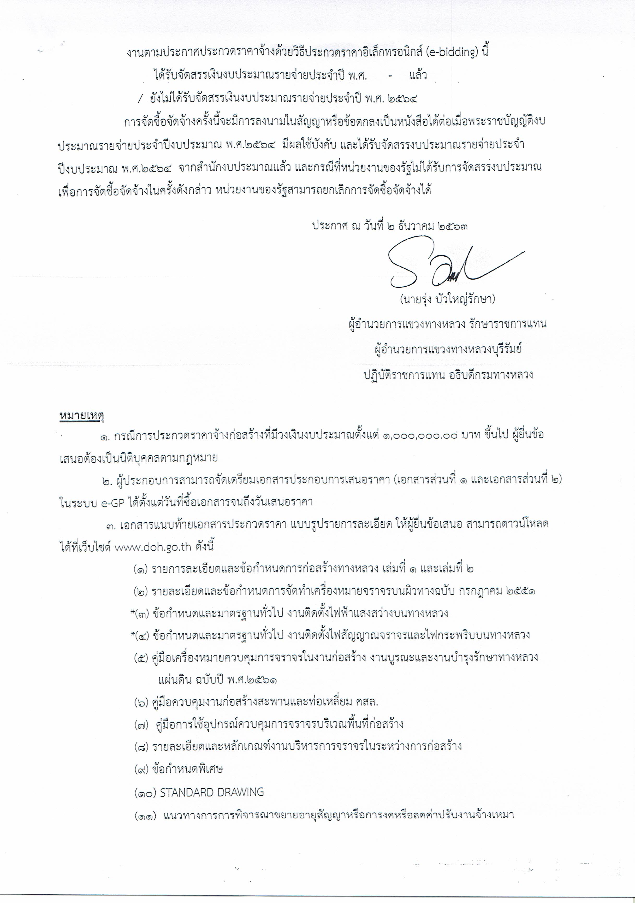 ประกวดราคาจ้างก่อสร้างงานไฟฟ้าแสงสว่าง ทางหลวงหมายเลข 24 ตอนควบคุม 0301 ตอน หนองมัน - หนองกี่ ตอน 3 ระหว่าง กม.92+239 - กม.93+079 ผลผลิต 1 แห่ง (ปริมาณงาน 49 ต้น) ด้วยวิธีประกวดราคาอิเล็กทรอนิกส์ (e-bdidding)