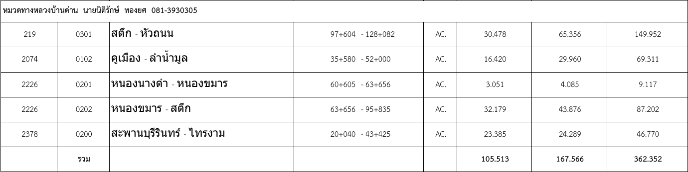ดูแลรับผิดชอบสายทางดังนี้