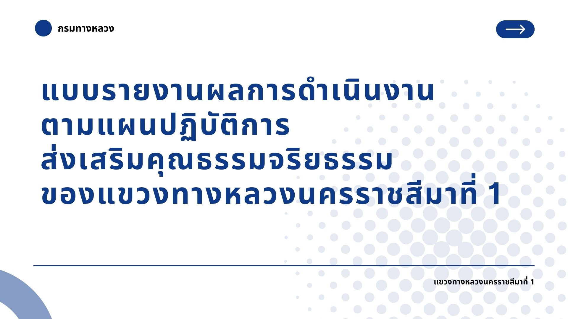 แบบรายงานผลการดำเนินงานตามแผนปฏิบัติการส่งเสริมคุณธรรมจริยธรรม แขวงทางหลวงนครราชสีมาที่ 1 ปีงบประมาณ พ.ศ.2568