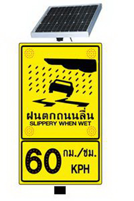 มิติที่ 4 การรณรงค์ติดตั้งป้ายเตือนฝนตกขับขี่ด้วยความระมัดระวัง โดยได้ติดตั้งป้ายรณรงค์และสุ่มตรวจจับความเร็วรถ