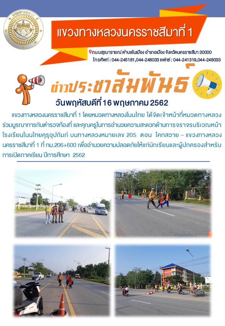 แขวงทางหลวงนครราชสีมาที่ 1 โดยหมวดทางหลวงในสังกัดได้จัดเจ้าหน้าที่ร่วมบูรณาการกับตำรวจท้องที่และคุณครู