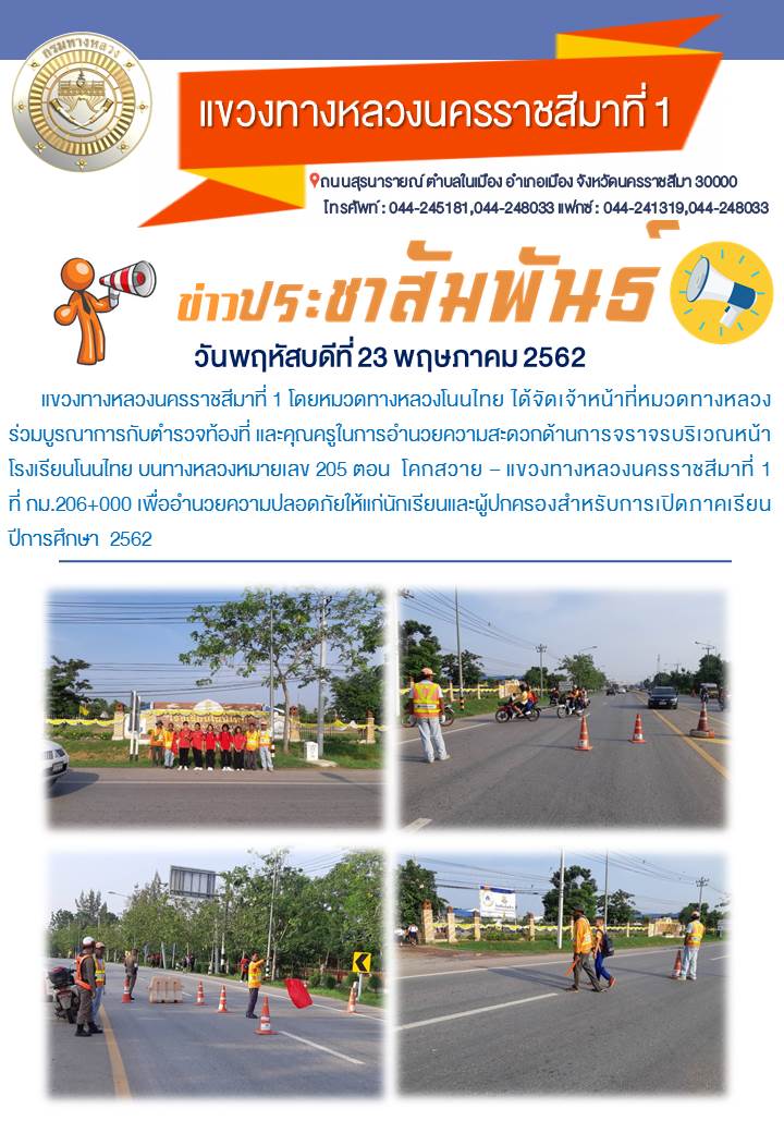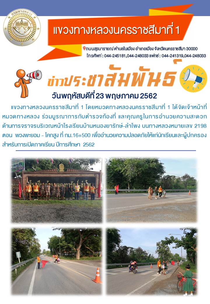 แขวงทางหลวงนครราชสีมาที่ 1 โดยหมวดทางหลวงในสังกัดได้จัดเจ้าหน้าที่ร่วมบูรณาการกับตำรวจท้องที่ และคุณครู